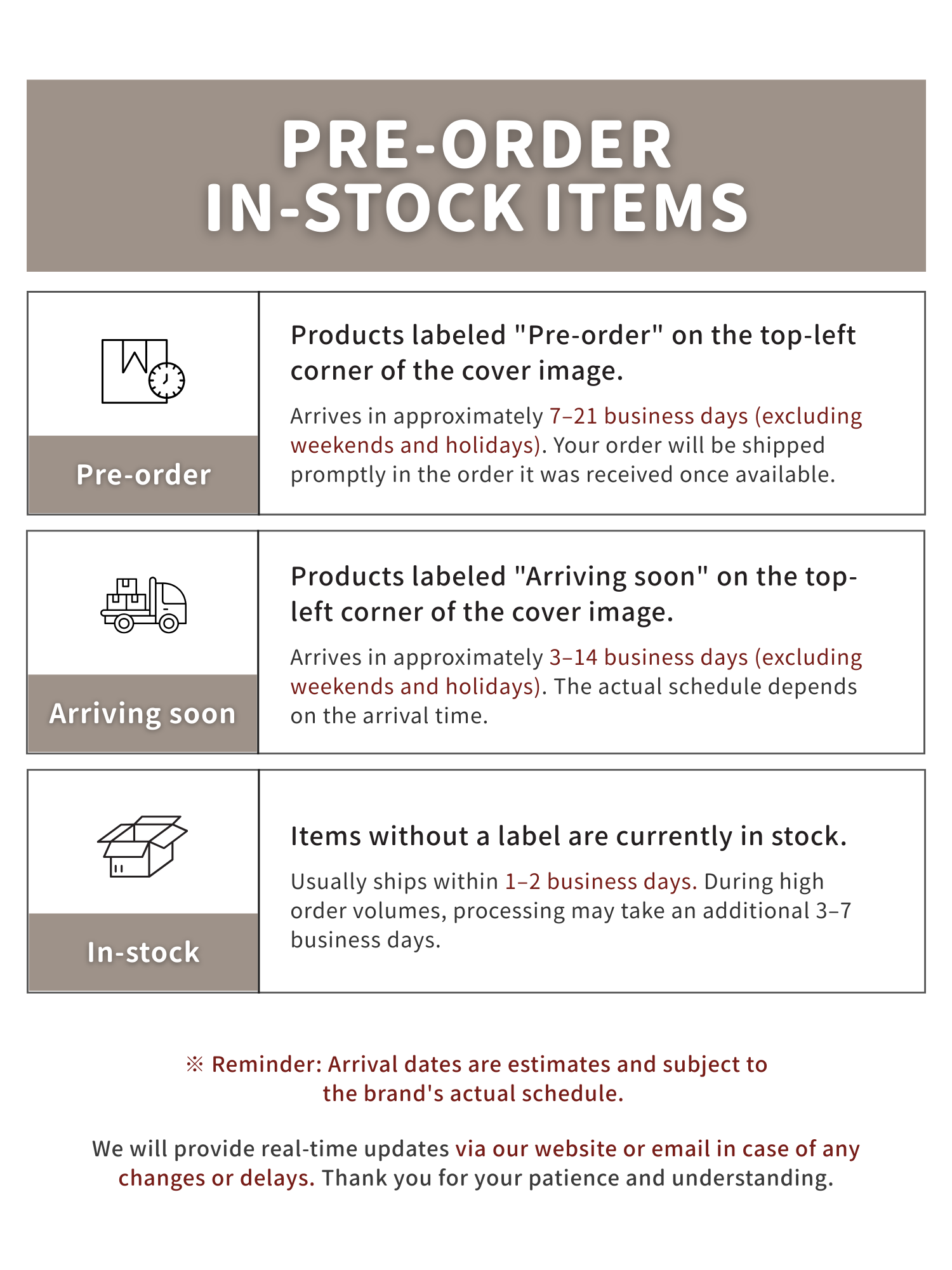 We appreciate your understanding and thank you for your continued support.