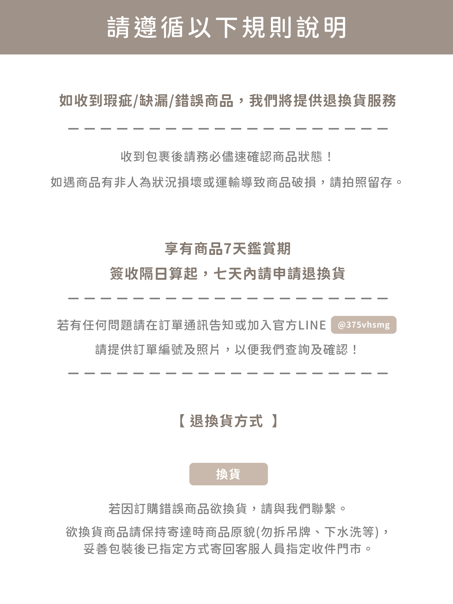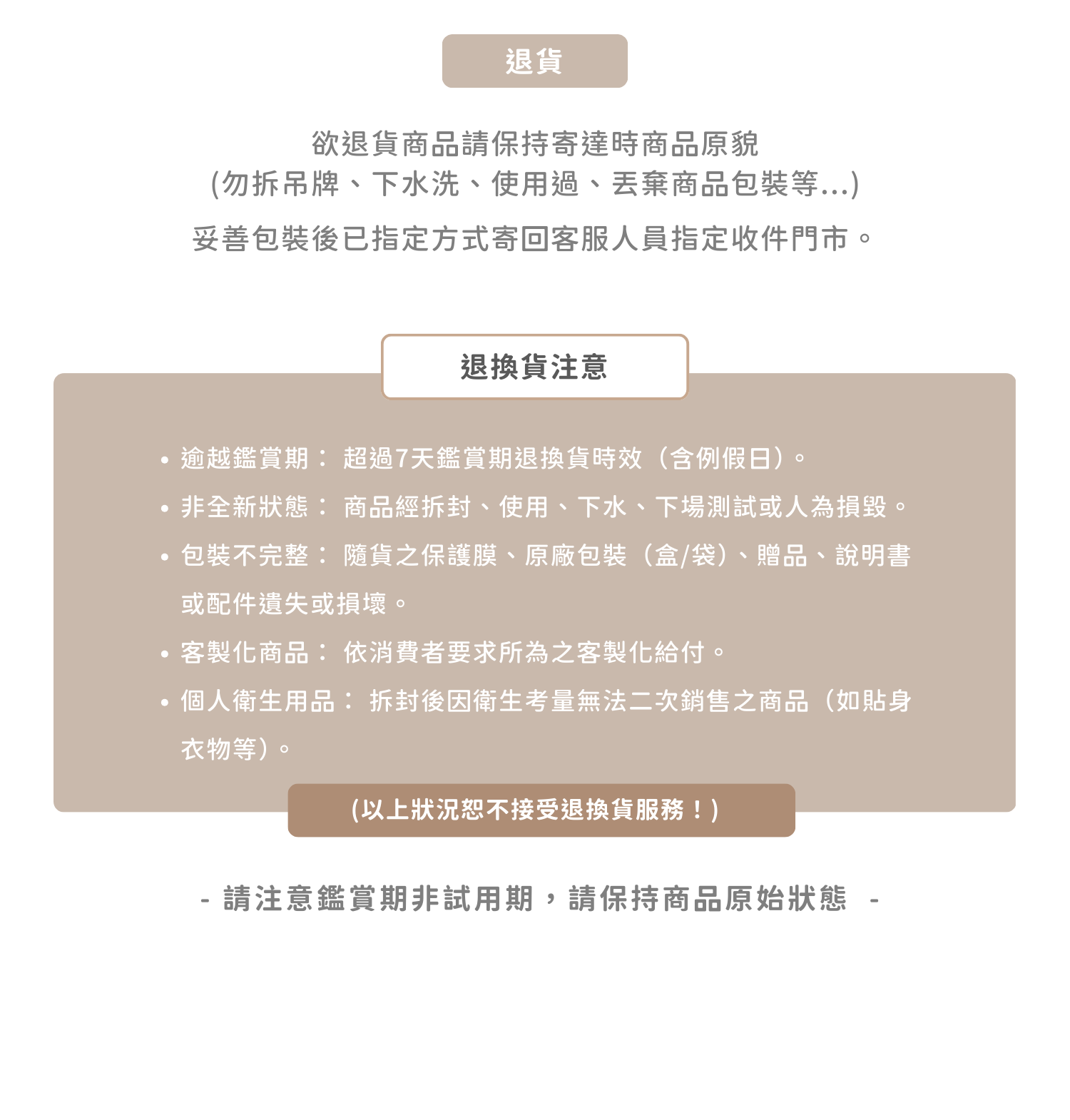 ⤷ 退換貨政策 | RETURNS
